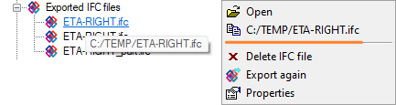 When you hover over an IFC file, the tip text shows the file path. The file path is also shown in the file's context-sensitive menu.