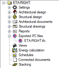 Exported IFC files is updated in the project's document browser. The IFC files generated from the model are displayed under this heading.