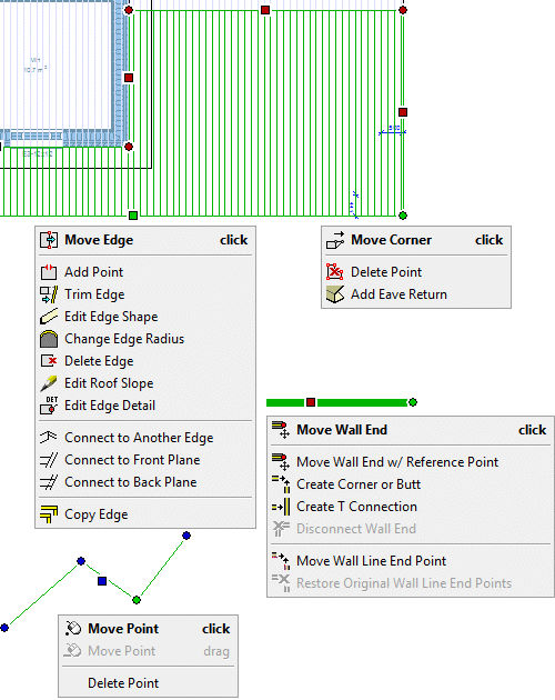 If you have selected a single object and there are other functions besides the default one connected to the grip point, please note the location of the cursor when you open the context-sensitive menu. When the grip point is active, you can only select functions connected to the grip point from the context-sensitive menu. If the grip point is inactive, functions connected to the grip point can be selected from the menu. If necessary, move the cursor until the grip point is deactivated, and open the context-sensitive menu after this. The object grip point is active when it is highlighted in green color.