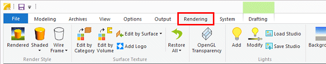 Functions of the software's add-on options are on their own tabs, for example Rendering or Options.