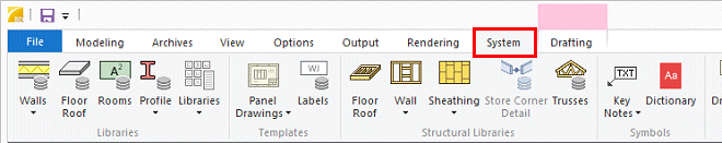 Functions for maintaining libraries are on the System tab. The tab is only available if you are a system administrator.