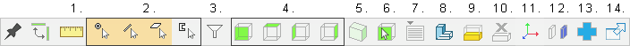 When the tool strip is pinned, it is visible all the time. When the tool strip is hidden, it appears when you move the cursor to the top edge / right edge of the working window. You can pin and hide the tool strip by clicking: