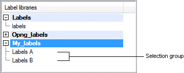 - Labels are grouped in the library according to the selection group. Enter the desired selection group in the text field.