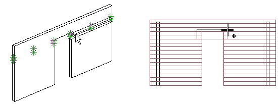 You can merge two logs into one. You can use this function, for example, when you want to remove an opening from a log wall. Use the function in the model or in the wall elevation.