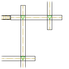 You can use this function to automatically find all log wall intersections. The program will mark all intersections it finds with a triangular symbol. You can add a new triangular symbol by clicking the desired point in the drawing or by using general snap-to-point functions. You can delete a selected point by clicking its triangular symbol.