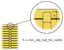 - The minimum thickness of a notched log at an opening. If the thickness is under the minimum, the log is cut entirely at the opening.