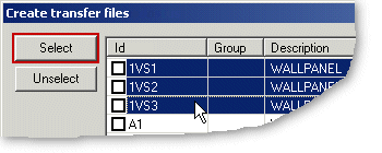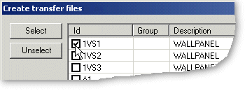 Transfer files are created from those panels whose check box has been selected