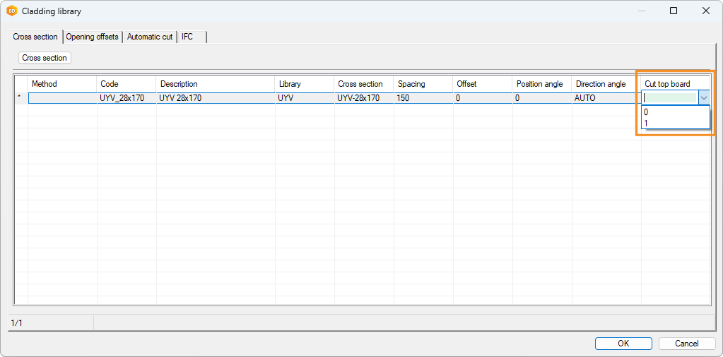 The update function adds the CUT_TOP_BOARD field to the customer-specific cladding tool library database FRMTOOL_CLADDING.
