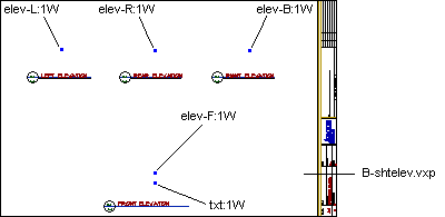 Finally, add alignment points to the elevation drawing sheet (file name B-shtelev.vxp, for example). The code of these alignment points should be of the following format: