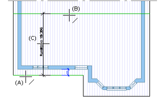 First define the position of the dimensioning eave as fixed. Add a dimension constraint fixing the dimensioning constraint (A) to a wall (B).