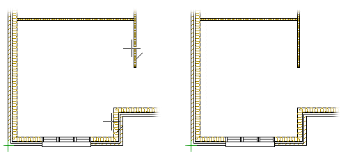 - Select a line or a point on the second wall (B). The walls are placed on the same line.
