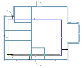 Add the second floor walls to their approximately correct locations next to the walls in the reference drawing (inside or outside the walls). Position the walls on top of each other by using coincident constraints, so that the exterior sidings of the walls on the second floor and in the reference drawing coincide. The coincidence of the exterior sidings will remain even if you change the frame thickness of the walls on the second floor.