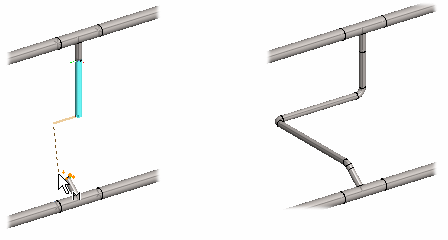 - If you click the center line of a straight component, choose a component with which to connect the pipes to each other.