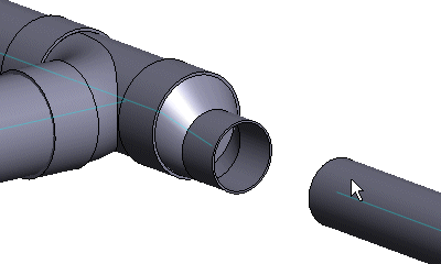 You can link the end of a pipe/duct to the end of another pipe/duct by adding a grip point linkage between the parts. The part can also be a pipe, duct or macro component (requires that a locating point macro has been modeled for the macro component). A grip point linkage is a geometric constraint.