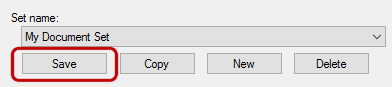 - Save all the selections you made (documents to be published, their properties, the publishing destination) in the document set. Click Save.