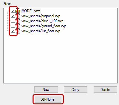 Check or clear the check box of the desired document in the Files list. By clicking the All / None button you can select all documents or clear all selections in turns.