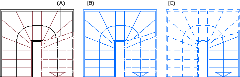 cut line (A) has been selected to be visible in the stair's 2D geometry. By default, the