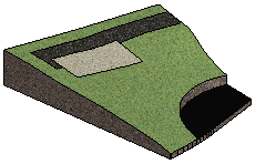 You can cut the terrain using excavations. The bottom of the excavation can be straight or follow the terrain contours. First draw the edge lines limiting the region in the drawing, see Preparations.