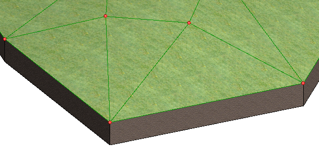 You can edit a terrain by adding new terrain points or moving or deleting existing terrain points. To make handling the terrain easier, the edge lines of the surface triangle mesh are drawn visible when editing the terrain.