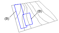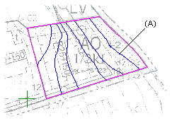 Draw the lot borders and elevation curves over the raster image using line functions. You can draw the elevation curves as open curves (A). Delete the raster when you are finished drawing the lines. When adding the terrain, select the points or lines you drew and specify their heights.