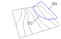 The edge line may include circular or elliptical arcs (C) but not other curves. The edge lines of the region or excavation can reach outside the edge lines of the terrain (D).