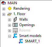 Smart models in the building are displayed in the object tree under the heading Smart models.
