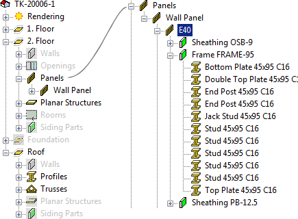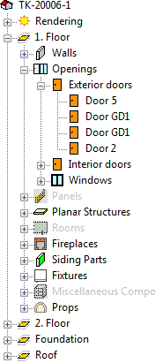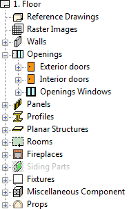 The object tree presents all building objects categorized in a hierarchical order. The content of the tree depends on the active working window (2D/3D) and the open drawing-model pair.