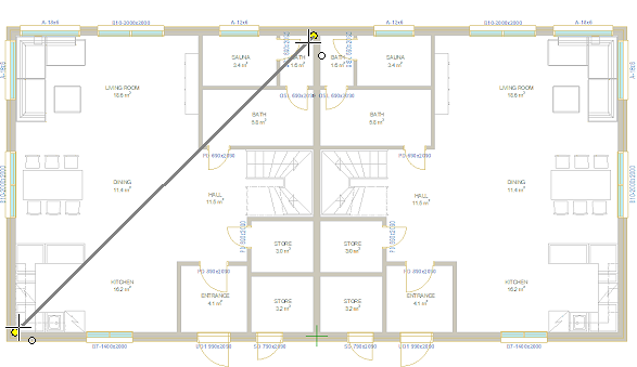 Select the space from the library. The default properties of the space have been defined in the library. Define the space by clicking the points or walls that limit the space.