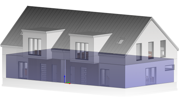 In the model, the space object can be partially or completely inside a building, in which case its geometry remains inside the building.