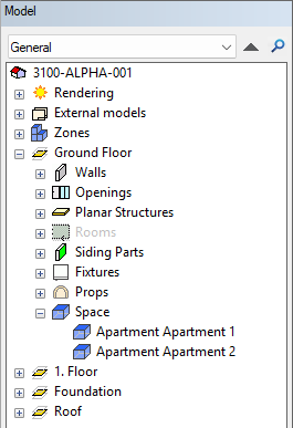 - Height - The height of the space object in the model. The default is room height (ROOM_HEIGHT) specified in the building parameters.