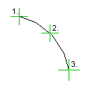 If you select the first point from the end point of a line, the program draws an arc tangential to this line by default.- In this case, you only click the end point of the arc.
