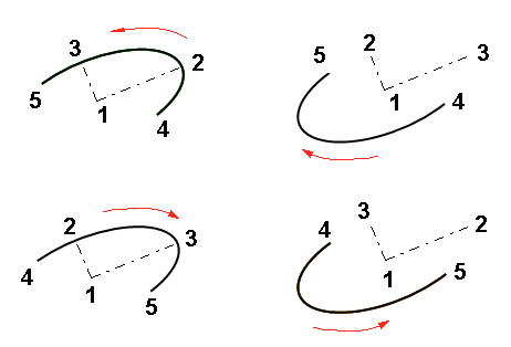 - The ellipse will be drawn counter-clockwise between the starting and end points when you click the radius points counter-clockwise.