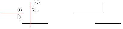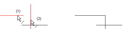 Trim two line elements to the nearest intersection point by continuing and/or shortening lines. When the lines intersect each other, select the line segments you wish to retain in the trim.