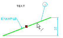 For example, if you select a line element, the text, part number, mechanical engineering symbol, dimension or geometric constraint added to the line will be marked with a highlight color. A text, whose locating point has been selected to another point than that of the line, and to which associativity has not been separately added, is not highlighted.