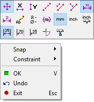 Auxiliary functions may be related to the function you have selected. These functions can be found in the context-sensitive menu. Open the menu by right-clicking at the exact point where you are working. The symbol of the cursor indicates that auxiliary functions are available.