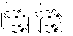 Mittakaavamuutos 1:1 -> 1:5 näkyy malli-ikkunassa siten, että mittaluvun koko suurenee.