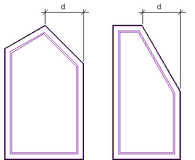 Ikkunalle, jonka yläreunassa on vino osuus, voit määrittää pisteen, jossa kaltevuus muuttuu. Määritä piste antamalla sen etäisyys (d) ikkunan reunasta.