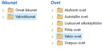 Valitse ikkuna tai ovi selaimessa. Ikkunat ja ovet on jaettu eri kirjastoihin, esimerkiksi ohjelmistotoimittajan vakiokirjastot ja käyttäjän omat kirjastot.