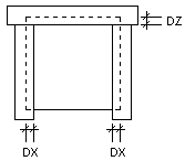Lisäksi pielilaudalle voidaan määrittää parametri DX, DY tai DZ, joka määrittää sijoituspisteen etäisyyden aukon reunasta.