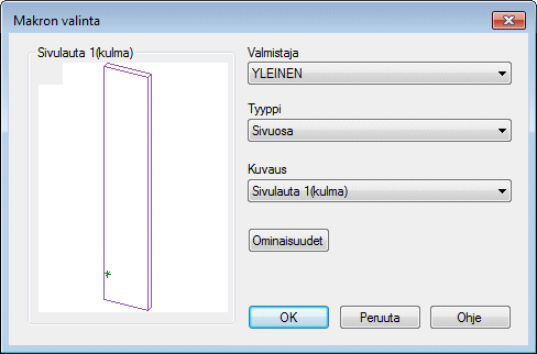 - Pielilaudat on jaettu eri kirjastoihin valmistajan mukaan. Valmistaja valitaan luettelosta, jolloin tyyppiluetteloon päivittyvät valmistajan vaihtoehdot.