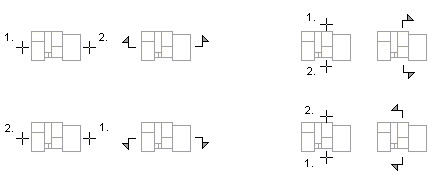 Määritä leikkauslinja rakennuksen pohjakuvaan pystyleikkauksen muodostamista varten. Leikkauksen suunta määräytyy sen mukaan miten osoitat leikkauslinjan alku- ja loppupisteen. Nuoli näyttää leikkauksen suunnan, kun osoitat alkupisteen jälkeen seuraavia pisteitä. Leikkauslinja voi olla suora viiva tai polveileva murtoviiva.