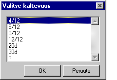 Toiminnolla valitaan lisättävän vaakarakenteen kaltevuus. Kaltevuus valitaan luettelosta, esimerkiksi: