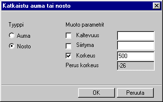 - Kun käytät tyyppiä Nosto, valitse muotoparametriksi Korkeus. Määritä korkeus suhteessa kerroksen peruskorkeuteen.