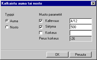 - Aumakaton katkaisukohdan voit määrittää joko parametrin Siirtymä tai Korkeus avulla. Kun käytät parametria Korkeus, määritä korkeus suhteessä kerroksen peruskorkeuteen.