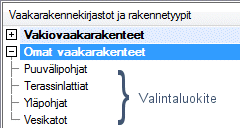 - Rakenteet ryhmitellään kirjastoon valintaluokitteen mukaan. Kirjoita tekstikenttään haluamasi luokite.
