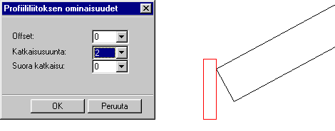 Esimerkki 4. Valitaan katkaisusuunnaksi 2, eli profiilin pää katkaistaan liitospinnassa kohtisuoraan siten, että profiilin pituus on pienin mahdollinen.