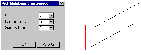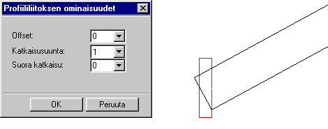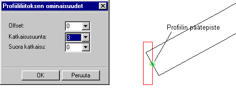 Esimerkki 5. Valitaan katkaisusuunnaksi 3, eli profiilin pää katkaistaan liitospinnassa kohtisuoraan siten, että profiilin päätepiste on liitospinnalla.