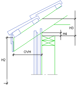 - Näistä parametreista kahdelle on annettava arvo, jolloin kolmas voidaan laskea Laske-painikkeella. Tavallisin vaihtoehto on antaa arvot parametreille Räystäsylitys ja Mitta katon yläpintaan/Alapintaan, jolloin Korkeus räystäälle lasketaan.