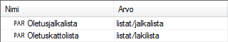 Oletuslistat rakennuksen parametreissa