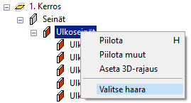 - Valitse esimerkiksi kaikki 1. kerroksen ulkoseinät seuraavasti: